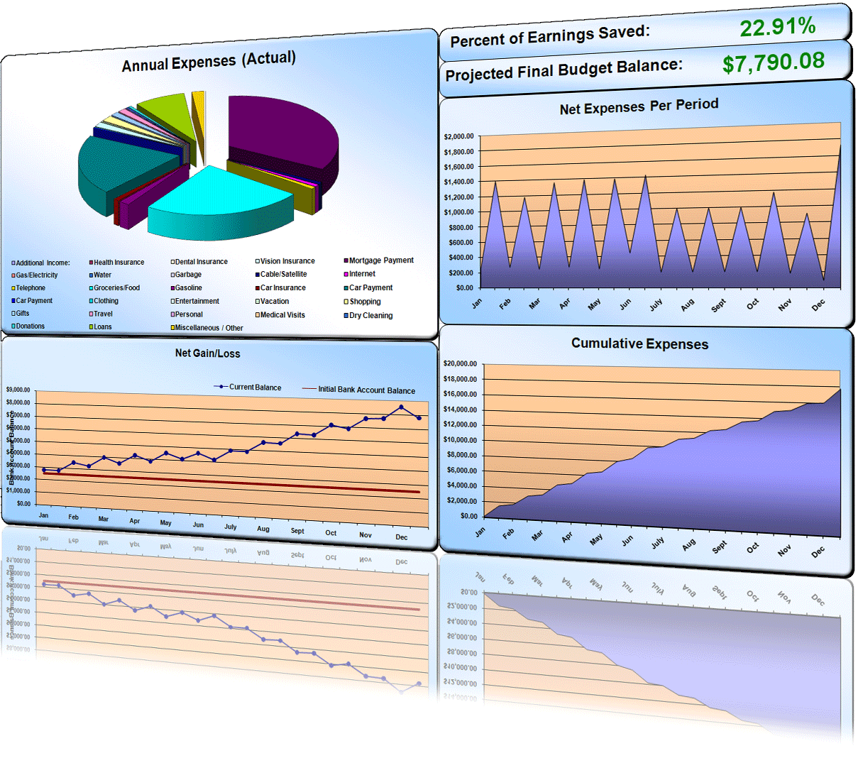 The BudgeX software product combines budgeting, planning, and money management all into one elegant spreadsheet built for Microsoft Excel. The software helps you create a personal or home budget in less than 15 minutes, and allows you to easily track your expenses with helpful charts. BudgeX provides you with both a big picture of your spending and details about each expense category. Budget spreadsheets have never been more helpful!